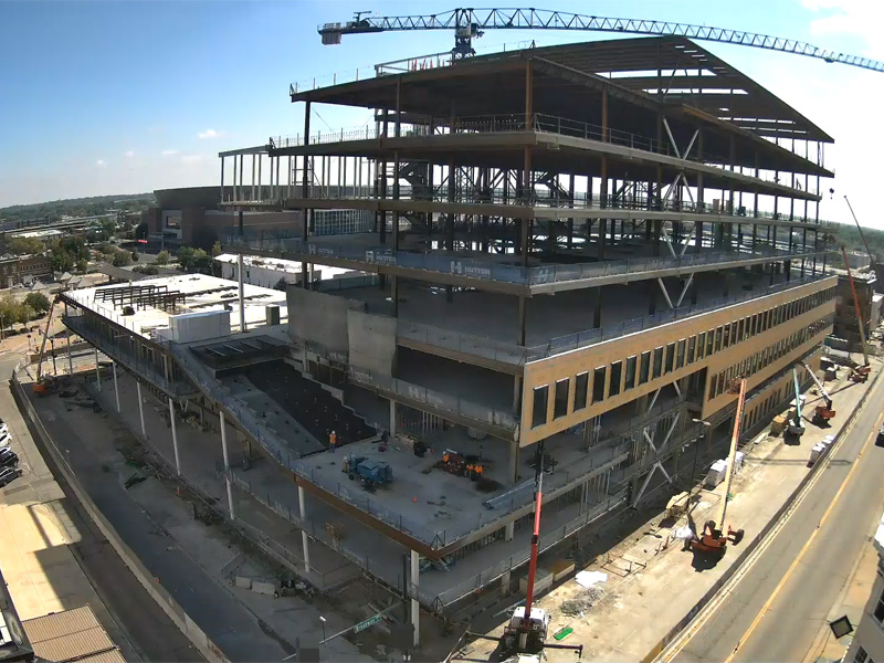 Wichita State University and the University of Kansas commemorated the final steel beam being placed on the building with a beam signing event Aug. 26 that included many members of the Kansas community. And you can follow along with the construction by watching the continuous livestream of the construction site online.