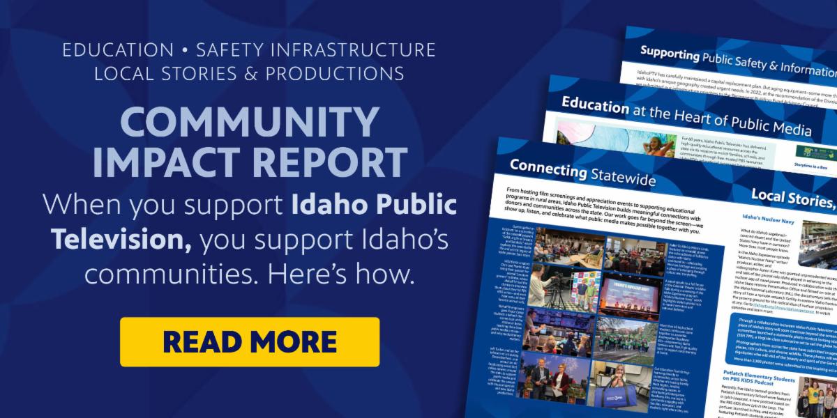Your donations to Idaho Public Television support educational programming, community outreach, and emergency communication infrastructure throughout the state. Read more