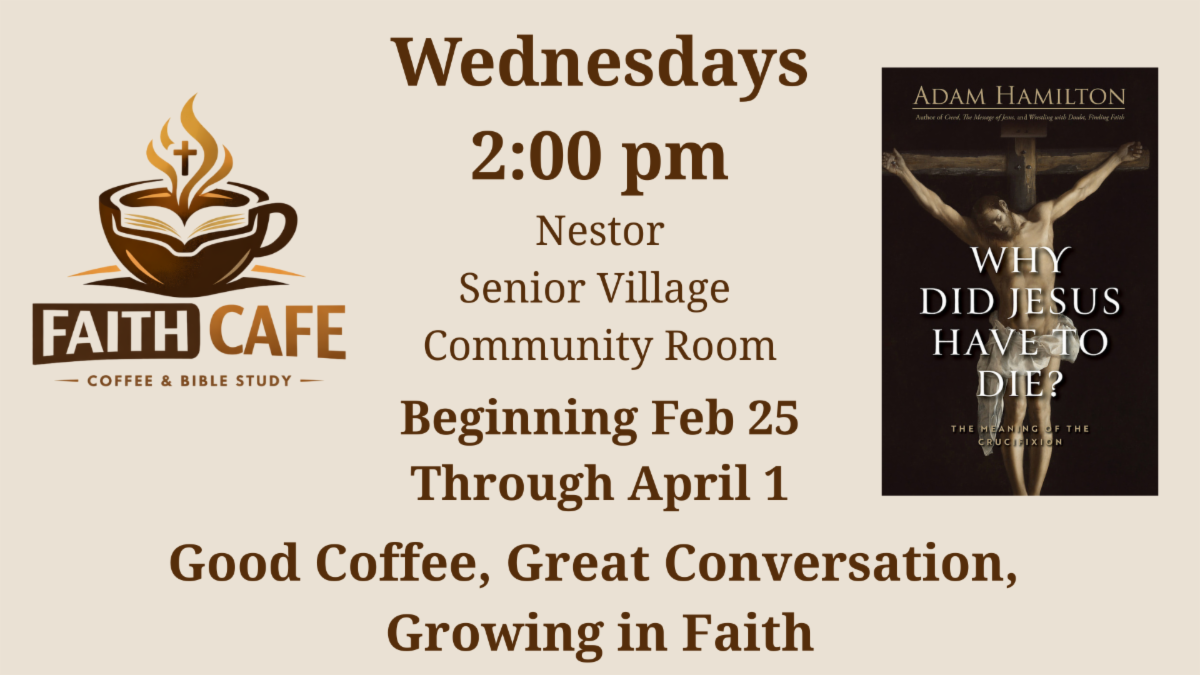 I'm so excited to share about our upcoming Lenten study, "Why Did Jesus Have to Die?" by Adam Hamilton! This is a fantastic opportunity for us to dive deep into the meaning of the crucifixion and engage in meaningful discussions. Join us for the class, led by Jim Geddes, on Wednesdays at 2:00 PM at the Nestor Senior Village or on Thursdays at 2:00 PM in the Conference Room. I've had the pleasure of reading the first couple of chapters, and I can’t wait to explore this thought-provoking book with all of you! The books won't arrive until 02/27, so I have made copies of the first chapter that will be available to you in the library on Sunday.