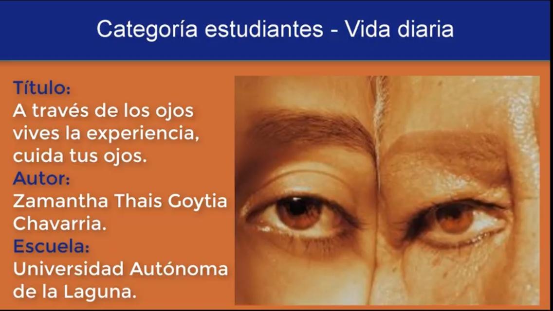 Optometry students at the Universidad Autonoma de La Laguna, Mexico participated in a photo contest and Zamantha Thais Goytia Chavarria won first prize with this picture entitled “Through the eyes you live the experience. Take care of your eyes”. Congratulations Zamantha!.
