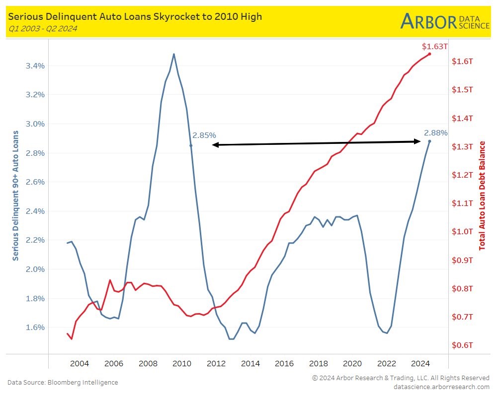 Figure 3: Auto loan delinquency rate v. Auto loan balances (Arbor)