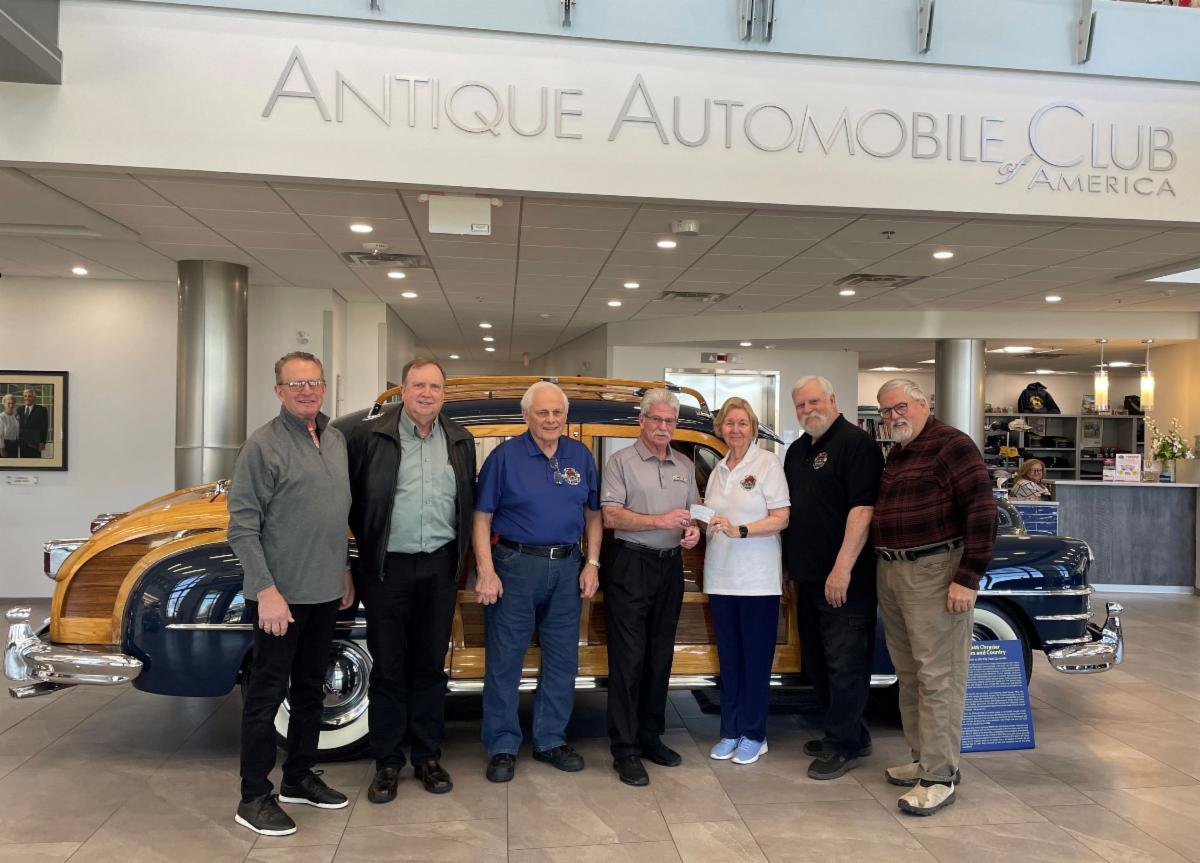 | | Sugarloaf Mountain Region Donates Proceeds from Tour | | The Sugarloaf Mountain Region visited AACA National Headquarters earlier this month to present a very generous check from the proceeds and donations from the 2024 Glidden Tour. Thanks to Region President Bruce Mazzie, Tour Chairman Rob Burchill, and the entire region for all of their hard work and the donation! This great tour, despite the rain, was honored with the Augustus Post Memorial National Award this past year. | | |