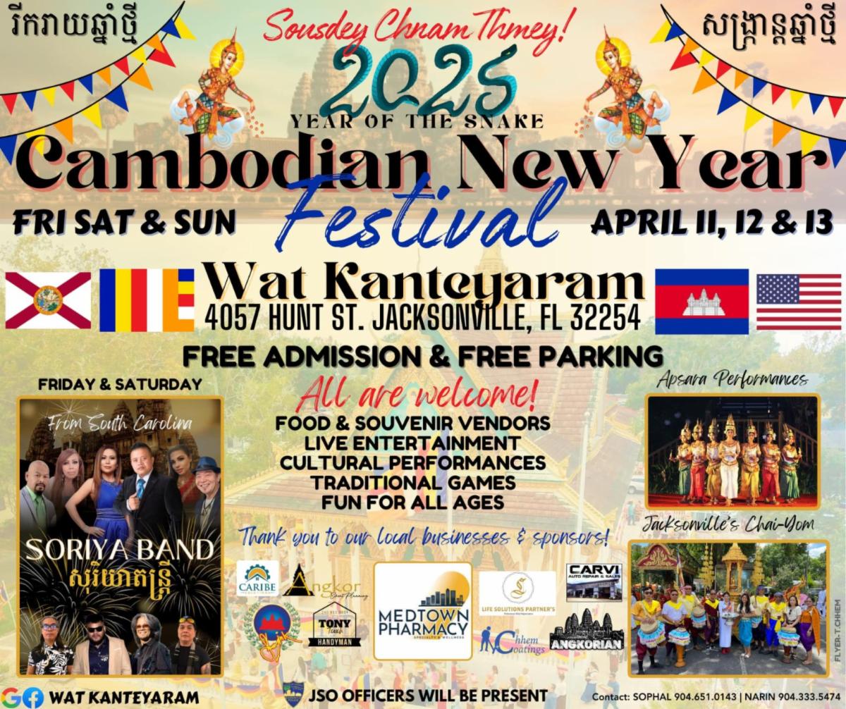 This year will be filled with traditional Filipino dances, performances, and free food so FSA @ UCF invite for all of you to attend and enjoy the show! |  |    |  |   | April 11 @ 10:00 am - April 13 @ 5:00 pm Cambodia New Year Festival in Jacksonville
