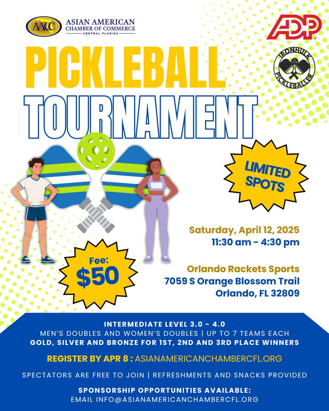 Visit us at www.asianamericanchambercfl.org to explore all the latest updates, resources, and opportunities for our members. Thank you for being a part of our journey as we continue to support and grow! |  |    |   | 🏓 All Player Slots Filled – But You Can Still Join the Fun! 🎉
