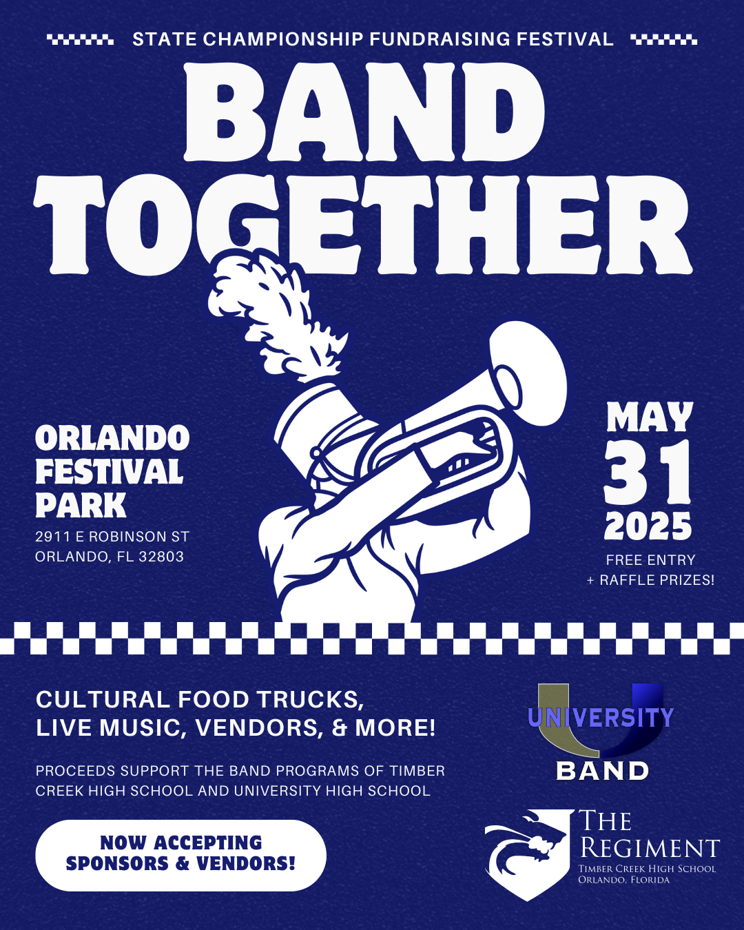 Join us at a high-energy community event supporting the talented band programs of Timber Creek High School and University High School as they prepare for the state championships.