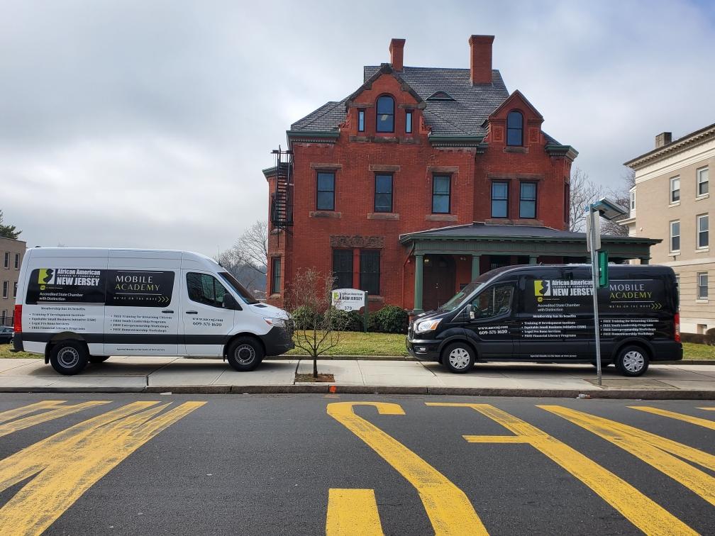 (TRENTON, NJ – March 6, 2023) The African American Chamber of Commerce of New Jersey (AACCNJ) held a ribbon-cutting ceremony on Thursday, February 23, for its Mobile Academy and Training and Development Institute (TDI) at AACCNJ’s headquarters in Trenton, New Jersey. AACCNJ Founder, President and CEO John E. Harmon, Sr., IOM; State Senator Shirley Turner; State Assemblywoman Verlina Reynolds-Jackson; Trenton City Council President Teska Frisby; AACCNJ Chair of the Board of Directors Stan Prater; and AACCNJ staff, members, and neighbors attended the event. Two large vans linked together by a traditional ceremonial red ribbon symbolized the mobility and breadth of each initiative.