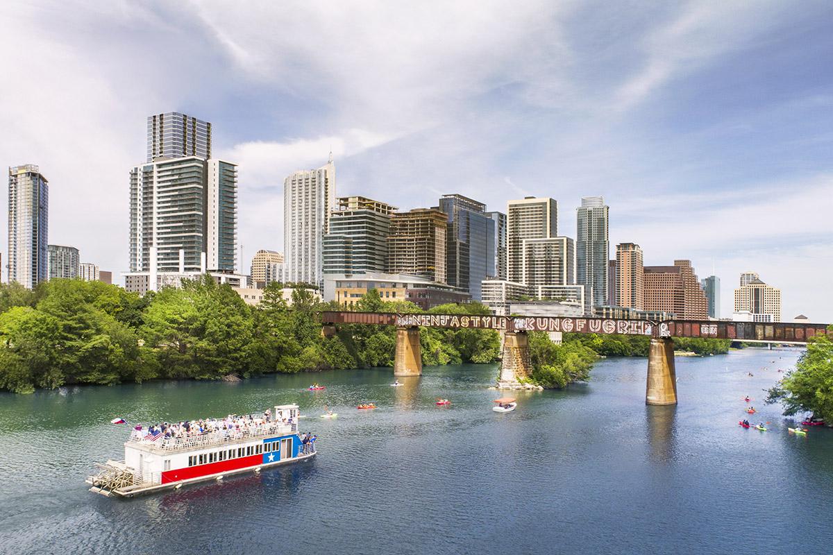 Scenic Views: Take in the picturesque sights of Lady Bird Lake and the Austin skyline.