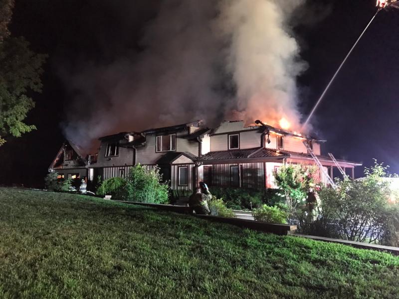 Firefighters responded to multiple 9-1-1 calls reporting smoke coming from a home in the 5500 block of Greenock Road. The first arriving firefighters reported fire on the second floor and in the attic of a large, two-story, single-family dwelling. The home is located in an area of the county without public water service (fire hydrants). Therefore a combination of supply hose line and water tanker shuttle was used to supply water for firefighting from a pond approximately 3000 feet away. The fire was brought under control in about two hours, with firefighting units remaining on the scene until 3:30 a.m. and investigators staying through the night. The cause of the fire is under investigation by members of the Anne Arundel County Fire and Explosives Investigation Unit. Two occupants, who were not home at the time the fire was discovered, have been displaced.
