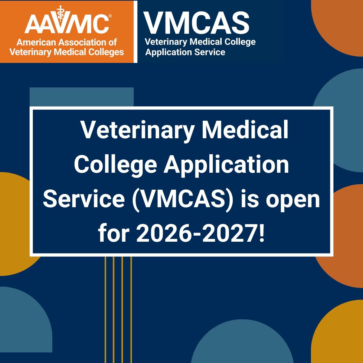 | | | Admissions and Recruitment | | The Veterinary Medical College Application Service (VMCAS) is now open for the 2026–2027 application cycle. Learn more about VMCAS and start your application here. |