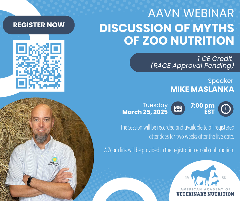 - Free webinars on cutting edge veterinary nutrition topics (4 per year)