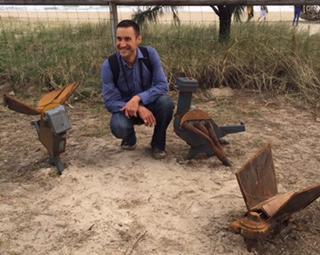 Swell Sculpture Festival on Currumbin Beach, Gold Coast, Australia. Thanks to Scoot airlines, we were able to be there to witness the work of 48 artists with works that made a statement, not only making good use of natural and recycled objects, but visually addressing environmental issues and benefits. Pictured at right is Dave Hickson with his "Pigeons for Peace".