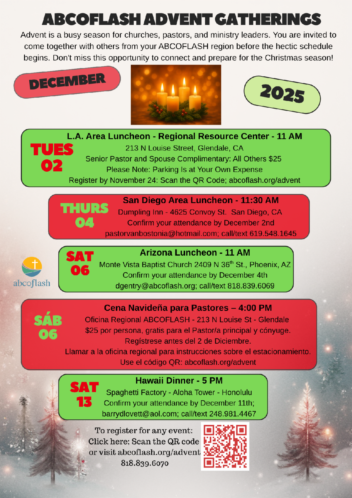 Further details are provided below. If you have any questions about the Advent gatherings, please email connect@abcoflash.org or call/text 818-839-6070.
