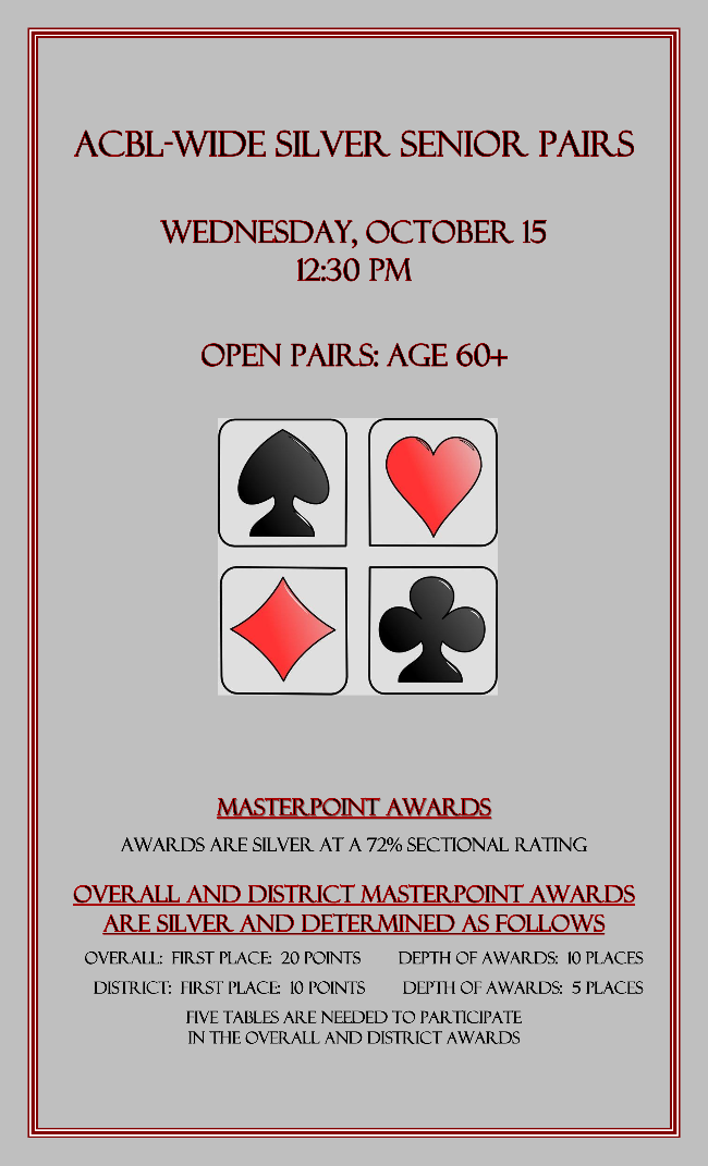 Results compared at the District and National Levels for Overalls and Additional Masterpoints