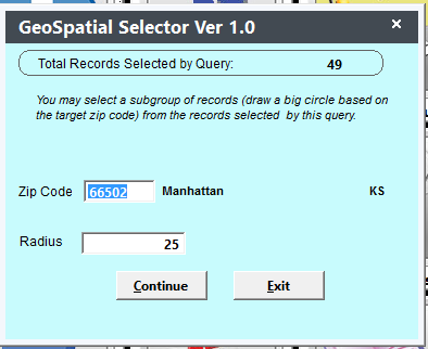 If you haven't tried using the zipradius function, go check it out. It should be a handy tool to help your focus your marketing, when proximity to a location is an issue.