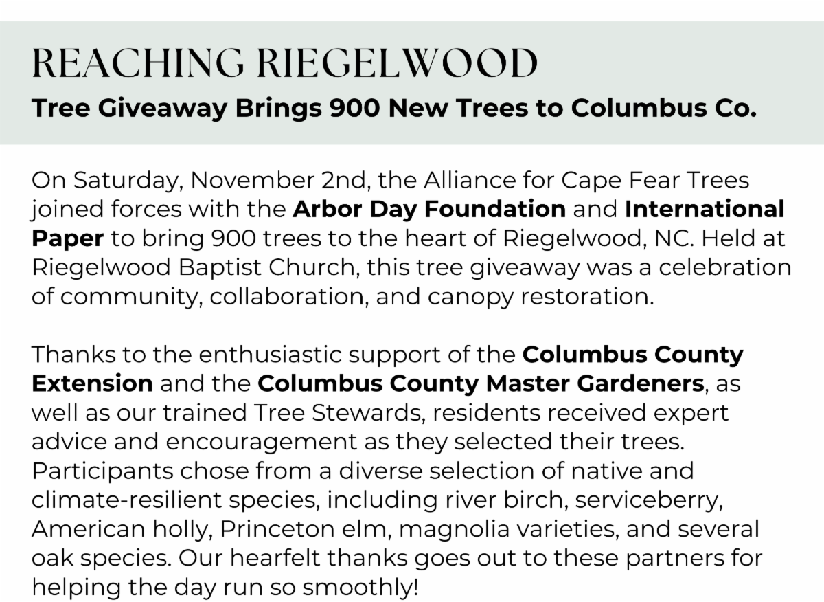 Alliance for Cape Fear Trees | 7 Beauregard Drive Suite 2 | Wilmington, NC 28412 US