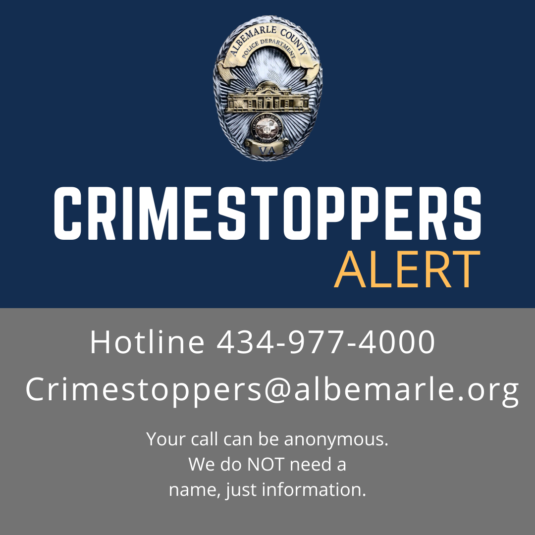 Anyone with information about tonight’s shooting is encouraged to contact ACPD at 434-269-5807 or 911. For those who wish to remain anonymous, contact Crime Stoppers at 434-977-4000 or Crimestoppers@albemarle.org.