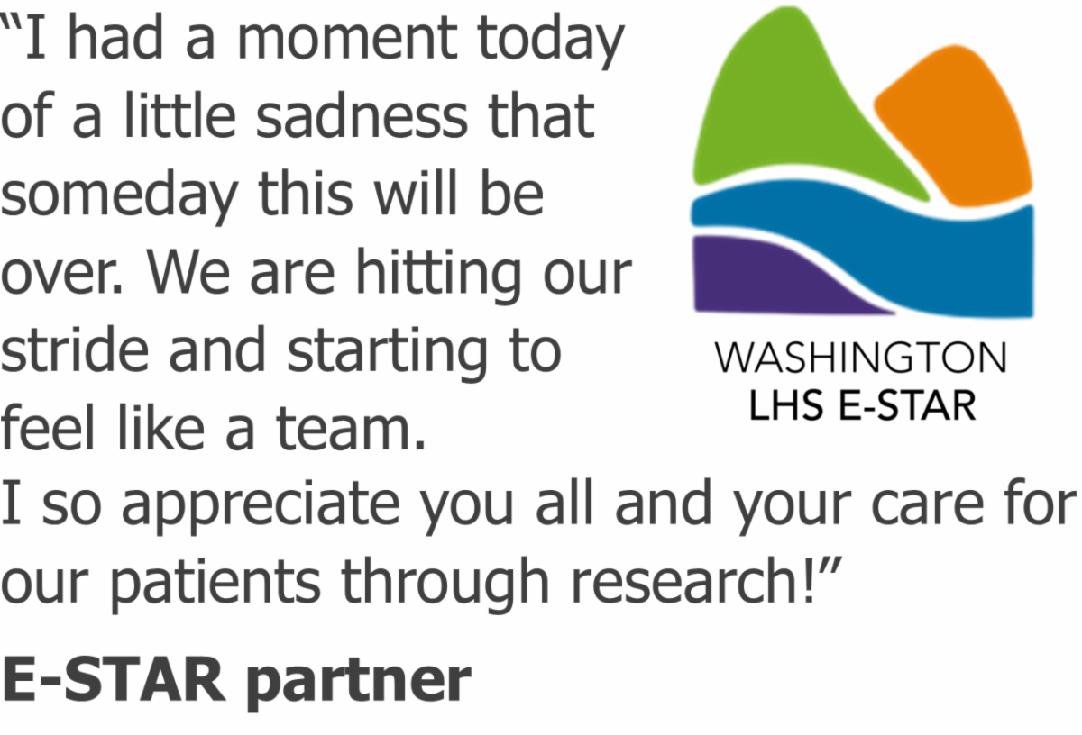 Training future LHS scientists in communities across Washington. With our partners in the Washington LHS E-STAR Center, our 2025 scholars launched 3 new quality improvement projects at the Veterans Affairs Puget Sound Health Care System and Kaiser Permanente Washington. The projects focus on improving social health, postnatal care, and flu vaccination rates across key patient populations. Other E-STAR scholars are working with NeighborCare and Community Health of Central Washington.