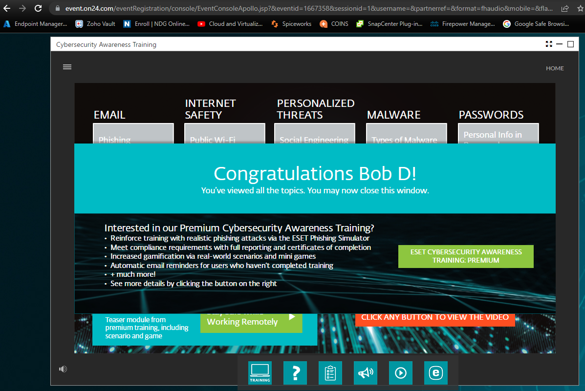 - The entire training should take approximately 90 minutes to complete. You can stop, come back, and pick up where you left off if needed.