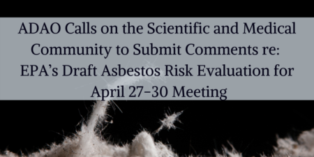 Since the EPA postponed the Science Advisory Committee on Chemicals (SACC) Draft Asbestos Risk Evaluation meeting, ADAO will be hosting our first online press conference on May 28 at 2 pm ET to discuss the dangerously narrow risk evaluation.