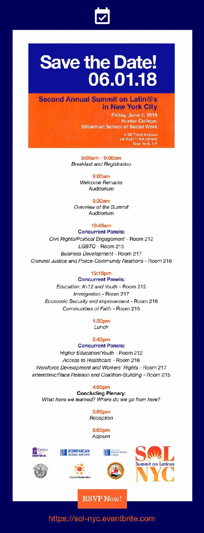 Segunda Cumbre Anual de Latin@s en Nueva York (SOL) para analizar las condiciones de la población de Latin@s en la ciudad de Nueva York y formular recomendaciones colectivas para abordar algunos de los problemas más importantes y difíciles frente a esta comunidad grande y amplia.