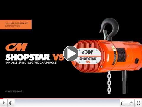 The CM ShopStar VSvariable speed electric chain hoist is a superior alternative to pneumatic powered hoists. This versatile hoist utilizes a variable frequency drive to control lifting speeds adjustable up to 63 ft/min. The compact design is ideal for use in workstations and production lines where precision load control is critical. The ShopStar VS is built for rugged industrial and commercial applications and features a high H4-plus duty cycle.