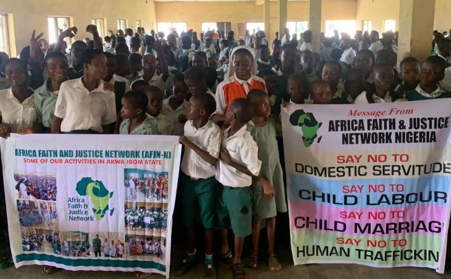 In February, AFJN with AFJN-Ghana sisters held "Working Together to End Child & Early Marriage and Domestic Servitude in Ghana". During the sensitization and advocacy workshop, AFJN with the Missionary Sisters of Our Lady of the Holy Rosary SN, Missionaries of Africa Merrivale Formation House, Safe-Child Advocacy, and Talitha Kum-Católica worked together to raise awareness on the impact of these practices on the child’s health and also they discussed situations that lead to trafficking.