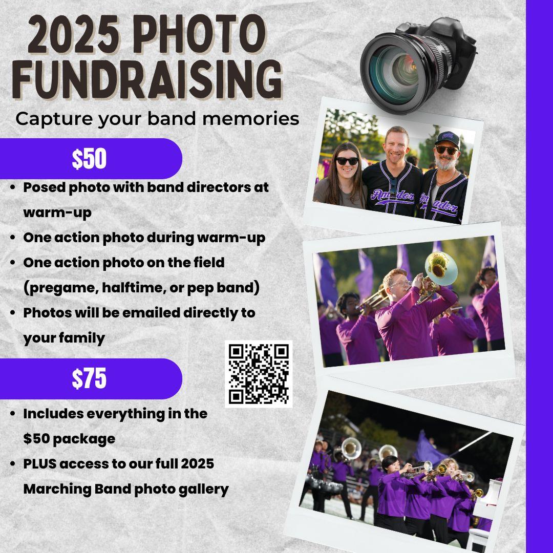 Your donation supports our band and gives you keepsake photos of your student’s hard work and joy on the field.
