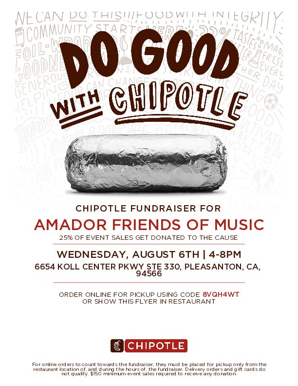 Dinner Plans for tomorrow? Support Amador Friends of Music at Chipotle!