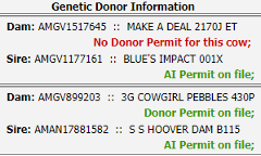 After the information above has been entered, a new screen will appear asking for more detailed information on the embryos you wish to store in your digital inventory. You should see the animal details on both the dam and sire from the previous screen including the registration number, tattoo and name. Depending on how organized you wish to be, you have the opportunity to enter the following details, but only required details are marked with an asterisk (*):