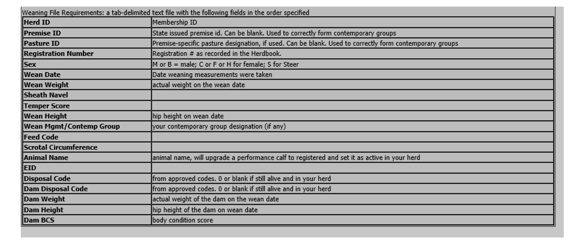 3.Using the drop-down menu provided beside “Data File Contents”, select the appropriate template you intend on uploading information within (Registration, Weaning, etc.)