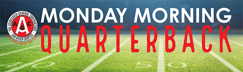 AGC San Diego Chapter's Monday Morning Quarterback is a "hot off the press" and to the point Monday morning briefing on the important issues facing San Diego's construction industry. It is prepared by AGC Chief Executive Officer, Eddie Sprecco, and Vice President Government & Industry Relations, Dustin Steiner.