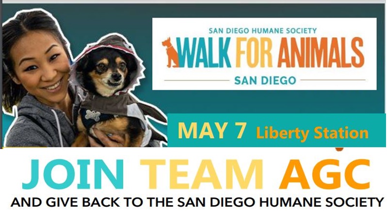 Join TEAM AGC in the WALK FOR ANIMALS, May 7, to Support the San Diego Humane Society