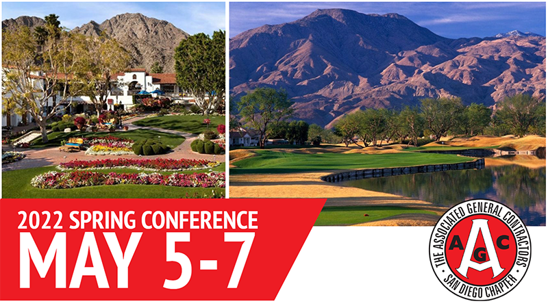 The AGC San Diego Chapter’s, Board of Directors Members and Meetings and Events Committee invites members to our 53rd Annual Spring Conference. The Spring Conference has traditionally followed the AGC Board of Directors Spring Retreat. Join us in La Quinta, California at the La Quinta Resort & Club for two nights, beginning with our Welcome Dinner Reception on Thursday, May 5, then a breakfast meeting scheduled for Friday morning, followed by a day of activities.