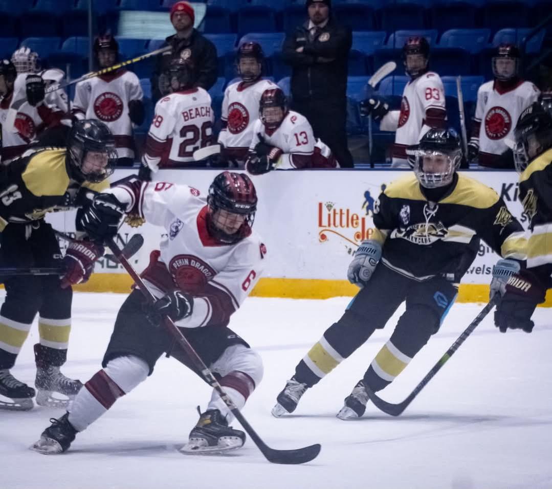 Sophomore Dylan Anderson scored twice for the Pekin Dragons in their 4-0 March 16 win over the McLean County Sharks for the championship in the fifth-annual AHAI Downstate High School Hockey Tournament, played at Grossinger Motors Arena in Bloomington.