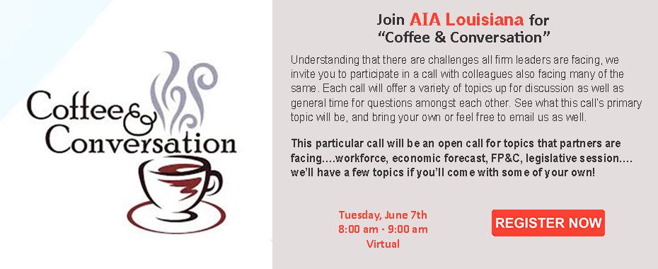 7         Coffee & Conversations (virtual; members only)