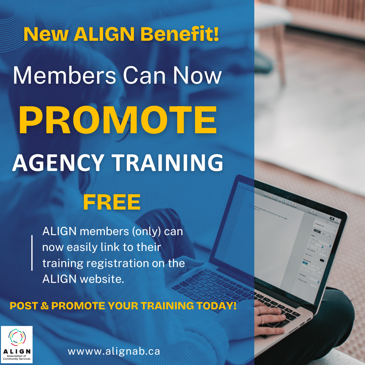 The ALIGN Association of Community Services is excited to announce a new members-only benefit: MEMBERS can now PROMOTE their WORKSHOPS/WEBINARS on the ALIGN website—FREE of charge!