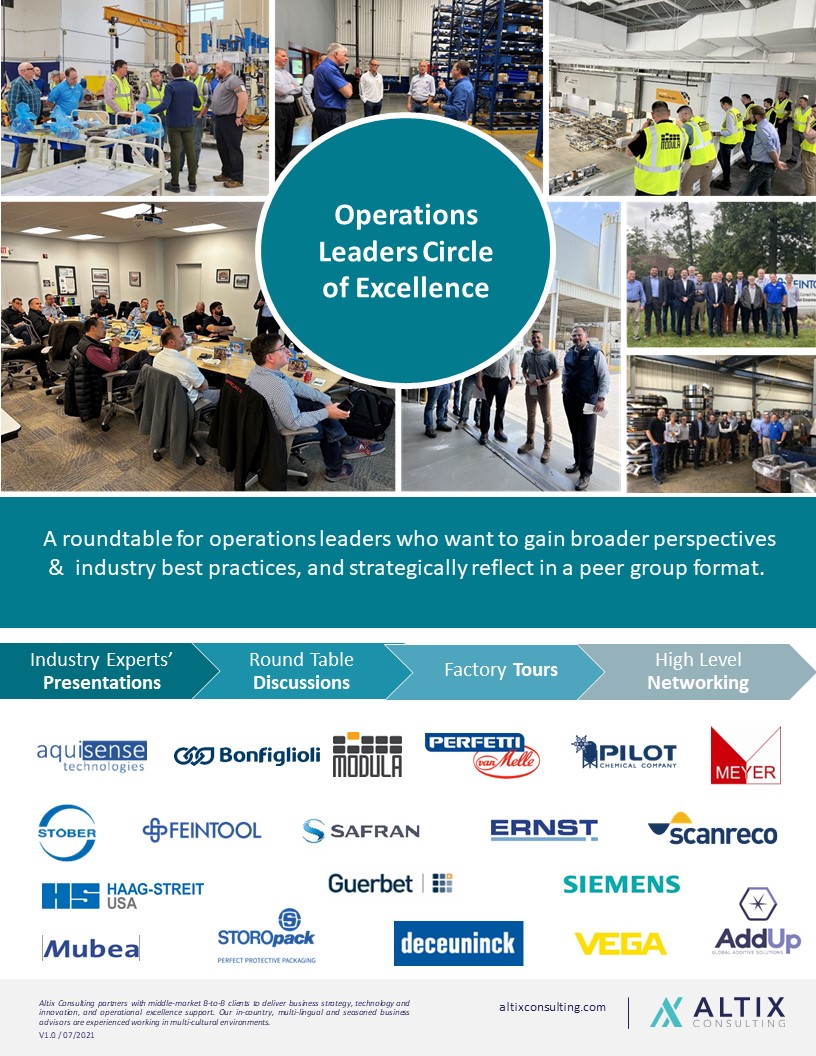 We are now accepting applications for the 2023/2024 Cohort of the ALTIX Operations Leaders Circle of Excellence. This 9-month program is a structured and interactive roundtable that includes industry expert presentations designed to share tried and proven best practices, and to help driven operations leaders gain broader perspectives via peer-to-peer roundtable discussions and factory tours.