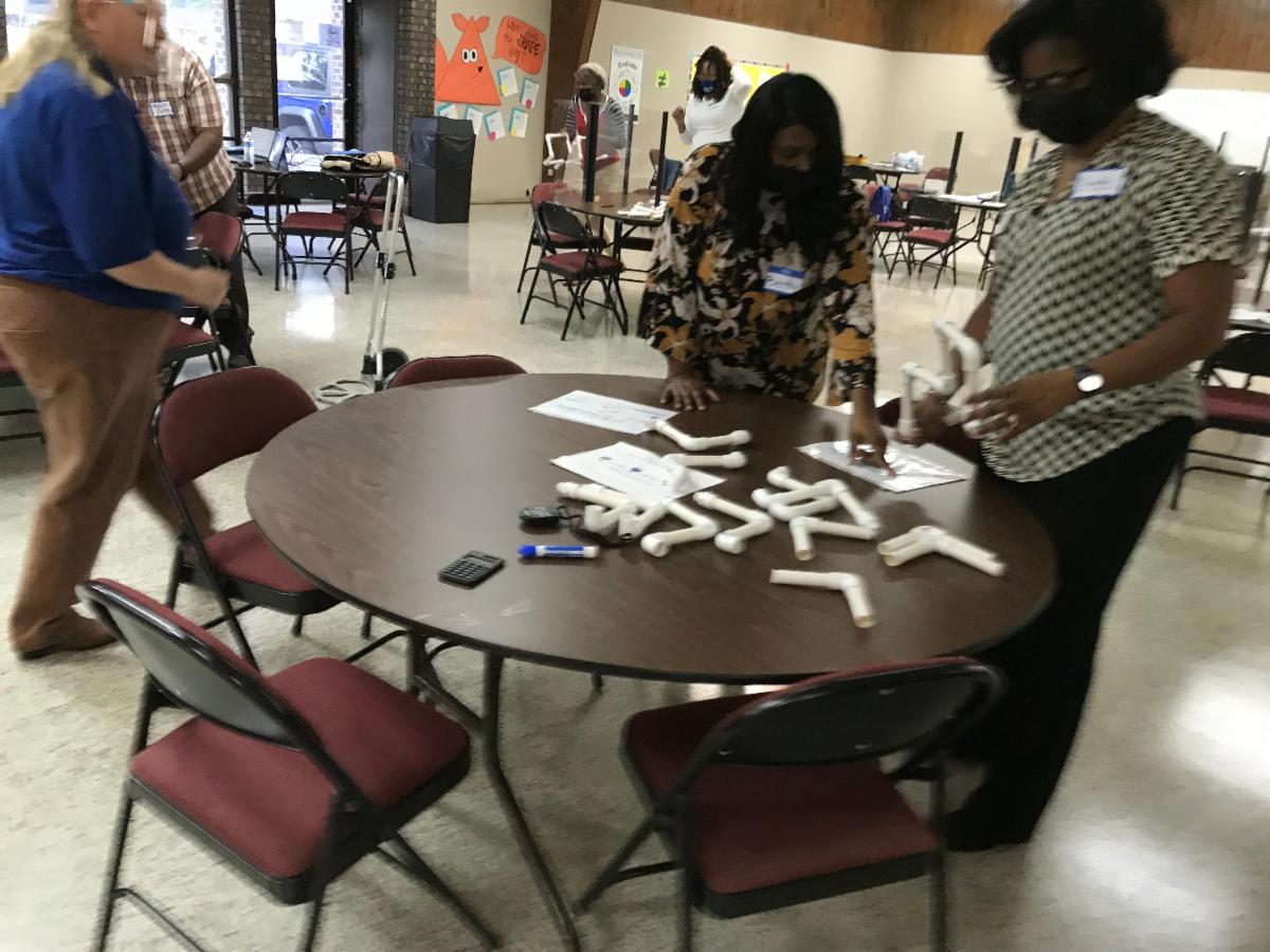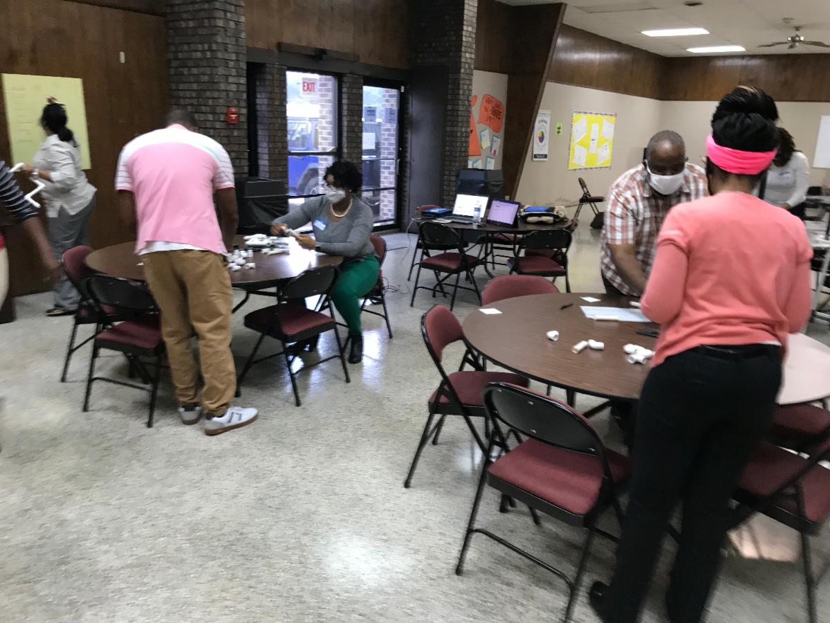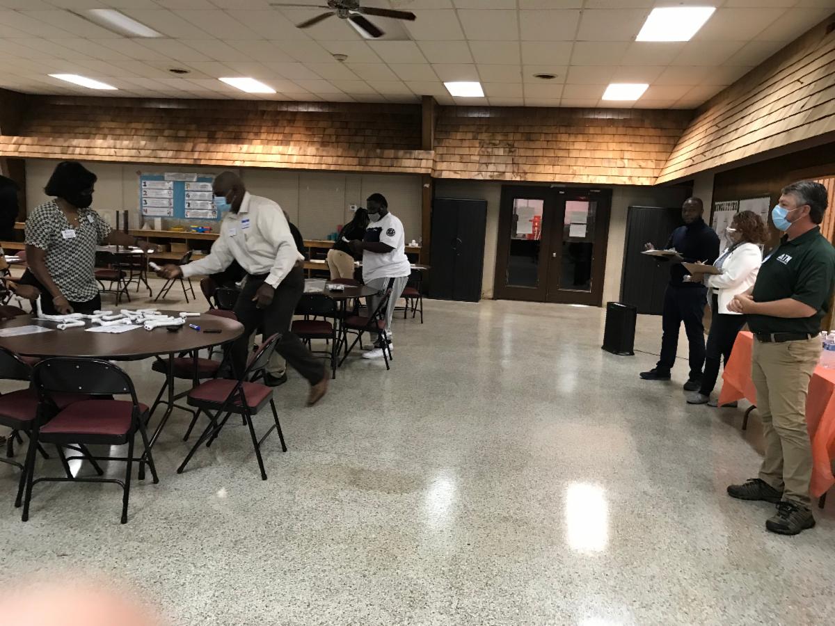 Representatives from Alabama Technology Network (ATN) graciously accepted the invitation to visit AMSTI WCCS-ASU and provide training to the staff. ATN provides extensive workforce training, technical assistance, & engineering services to incumbent workers across the state in areas of Continuous Improvement, Environmental Health & Safety, Food Safety, Industrial Maintenance & Technology, and Leadership & Management Development. Staff endured a fun-filled day of training on Lean. Lean can simply be stated as maximizing customer value while continuously identifying and eliminating company waste. The Alabama Technology Network (ATN) provides solutions to companies in their pursuit of continual improvement. ATN’s classes teach the method and application of the tools with real world examples and hands-on simulations to effectively educate employees. ATN also facilitates actual “events” to involve and teach implementation of the lean principles and tools in the company.
