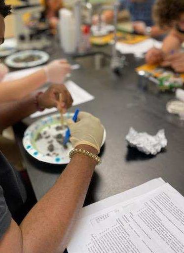 11th graders at Billingsley reveal what the owls digested as they dissect owl pellets.