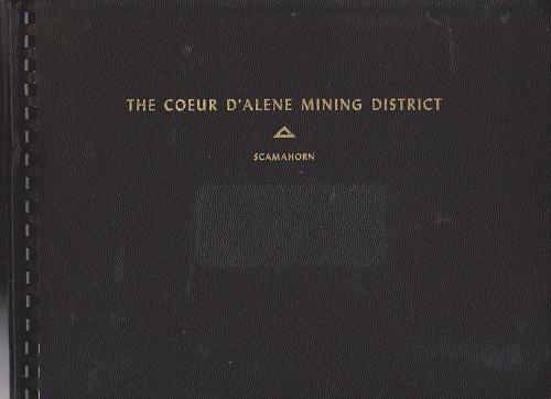 15). (Idaho - Mining) Scamahorn, Eugene D. THE COEUR d'ALENE MINING DISTRICT AS SEEN THROUGH THE AERIAL CAMERA OF . . Spokane, WA: Scamahorn Air Photo Co. Spokane. 1948. 95 pgs. 48 photo plates, 1 map. Original limp pebbled black cloth comb-binder, gilt lettering stamped on front cover. w/ presentation label on verso of title from R.E. Nelson & Co., member of the Spokane Stock Exchange. First edition of this aerial photographic survey documenting the mines, mills, and mining towns in northern Idaho as a promotional piece to boost investment in the mines following World War II. The Coeur d’Alene mining district featured at the time the richest silver mine in the world, the deepest lead mines, the nation’s largest underground hoist, in an area which had produced over 1 billion dollars worth of metals. These well-labeled and sharp photos include the Highland Surprise, the Sidney Mine, Nabob Mine, Lookout Mountain Mine, Smelterville, Bunker Hill Smelter, Kellogg, City of Kellogg, the Sunshine Mine, the Polaris Mines, the Polaris Mill, Vulcan Silver Led Corp., Silverton, the Hecla Mine, Wallace, ID, the Golconda Mill and Mine, and more. Scamahorn (1916-2005) immigrated in the 1920s with his family from Illinois to Spokane, and enlisted in the U.S. Army in 1943, graduated Flying School in 1943, became a captain by 1945, served in the National Guard as a Major from 1947 through the Korean War, and operated a small photography studio in Spokane from 1947 through 1956 according to city directories. Vg cond.