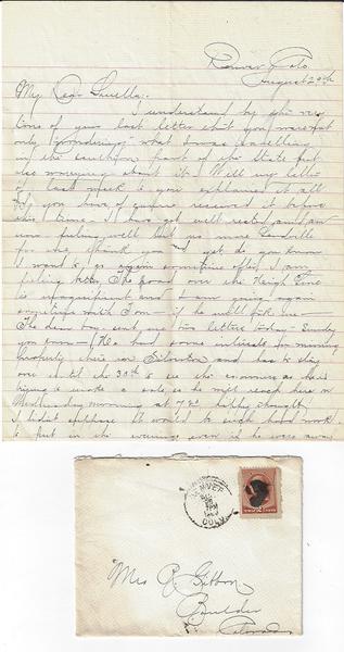 18). A three page ALS dated August 29, (1899) retaining its transmittal envelope addressed to Mrs. R. Gibbon of Boulder, Colorado.