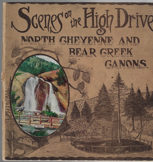 9). (Colorado) Lavley, J.E. SCENES ON THE HIGH DRIVE; NORTH CHEYENNE AND BEAR CREEK CANONS. H.H. Tammen Curio Co. 1st. 1907. Beautiful pict. Wraps. 29 scenic photographs of the major natural sites and formations such as Sentinel Rock, Devils’ Slide, The Head of Sorrowful Satan, Bridal Veil Falls, Silver Cascades, Sand Stone Cliff, etc. The title page states “The book will be a treasured souvenir and will many times in the future recall the pleasures of the drive as well as be a welcomed gift book to convey to the folks at home an idea of these wonderful scenes. The photographs are inadequate and language incomplete to do full justice to the grandeur of these scenes, as they fail to produce the feelings of delight and awe invariably experienced by the beholder of this panorama of nature’s gift to man.” Vg cond.