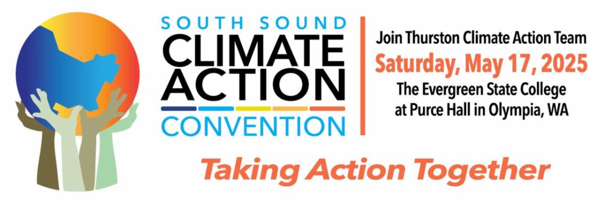 The South Sound Climate Action Convention (previously held in 2016 through 2019) is an opportunity for the community to gather to discuss the state of climate planning and progress in Thurston County. It's a time to collaborate on ways we can take action together to ensure a low carbon future and resilience for all, especially our most vulnerable populations. We will be reviewing progress on the Thurston Climate Mitigation and Resilience Plans and building community together to meet its goals!