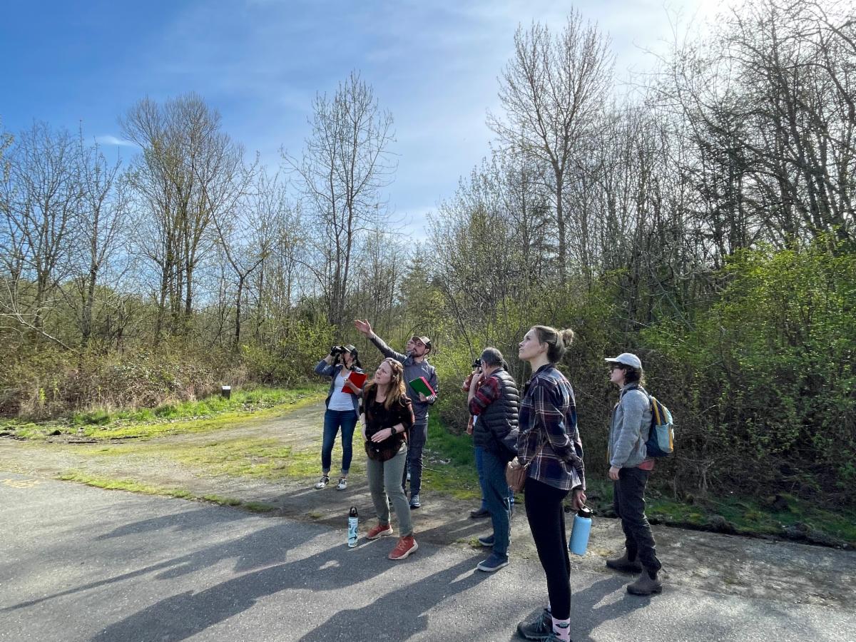 We had a blast walking around Capitol Lake on April 4th with our friends at Firecraft Northwest. During the event, Wildlife of Capitol Lake and Deschutes Estuary, the sun was in our favor as we meandered through the trails of the Interpretive Park to identify birds, insects, plants, and signs of animals. We looked at features of the basin and discussed how they might change with the estuary restoration and return of tidal activity.