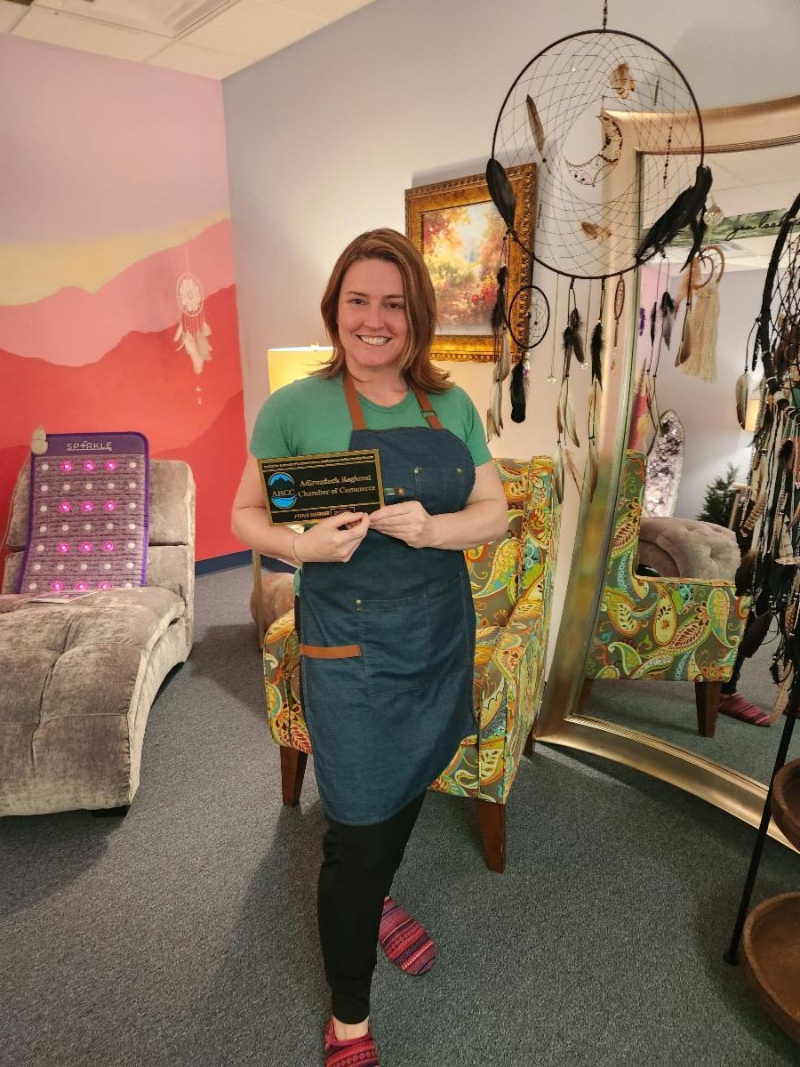 ARCC Ambassador Holly DeKleine, of nePROMO, visited with June Stoddard-Finemore owner and operator of Adirondack Healing to present her with her new member plaque. Thanks Holly!