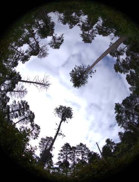 Photo Caption: Hemispherical photograph taken in 2025 at Red Pine ASCC Cutfoot Experimental Forest, transition gap