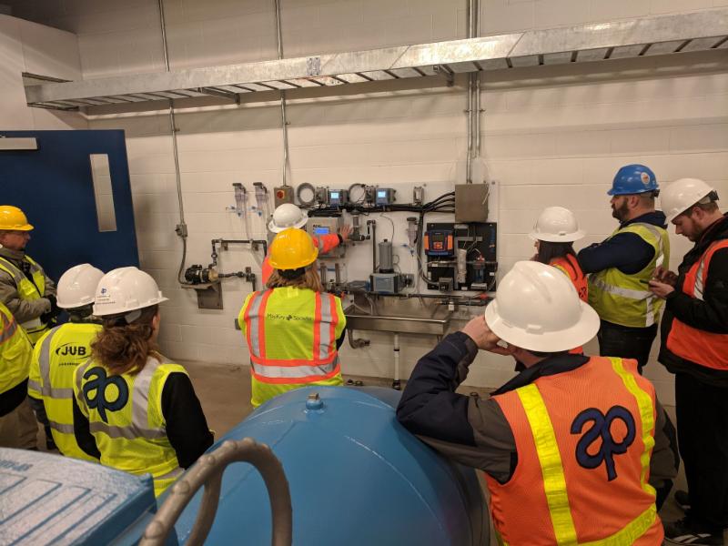 In January 2019, the City of Walla Walla gave us a tour of their Water Treatment Plant upgrade construction project. The City was upgrading the treatment plant including replacement of the ozone disinfection process with UV disinfection in order to comply with new EPA guidelines. Thanks to Nathan Black, with the City for leading our group of 17 people around the water treatment plant and providing detailed descriptions of the design and construction challenges and solutions incorporated at various locations.