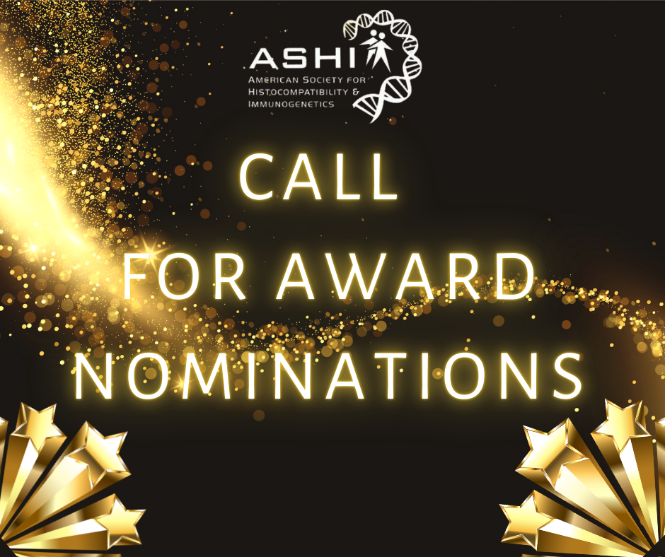 Each year the American Society for Histocompatibility and Immunogenetics sponsors awards to recognize scientific accomplishments and contributions to the fields of histocompatibility and immunogenetics as well as service to the society. ASHI is currently accepting nominations for the following awards: