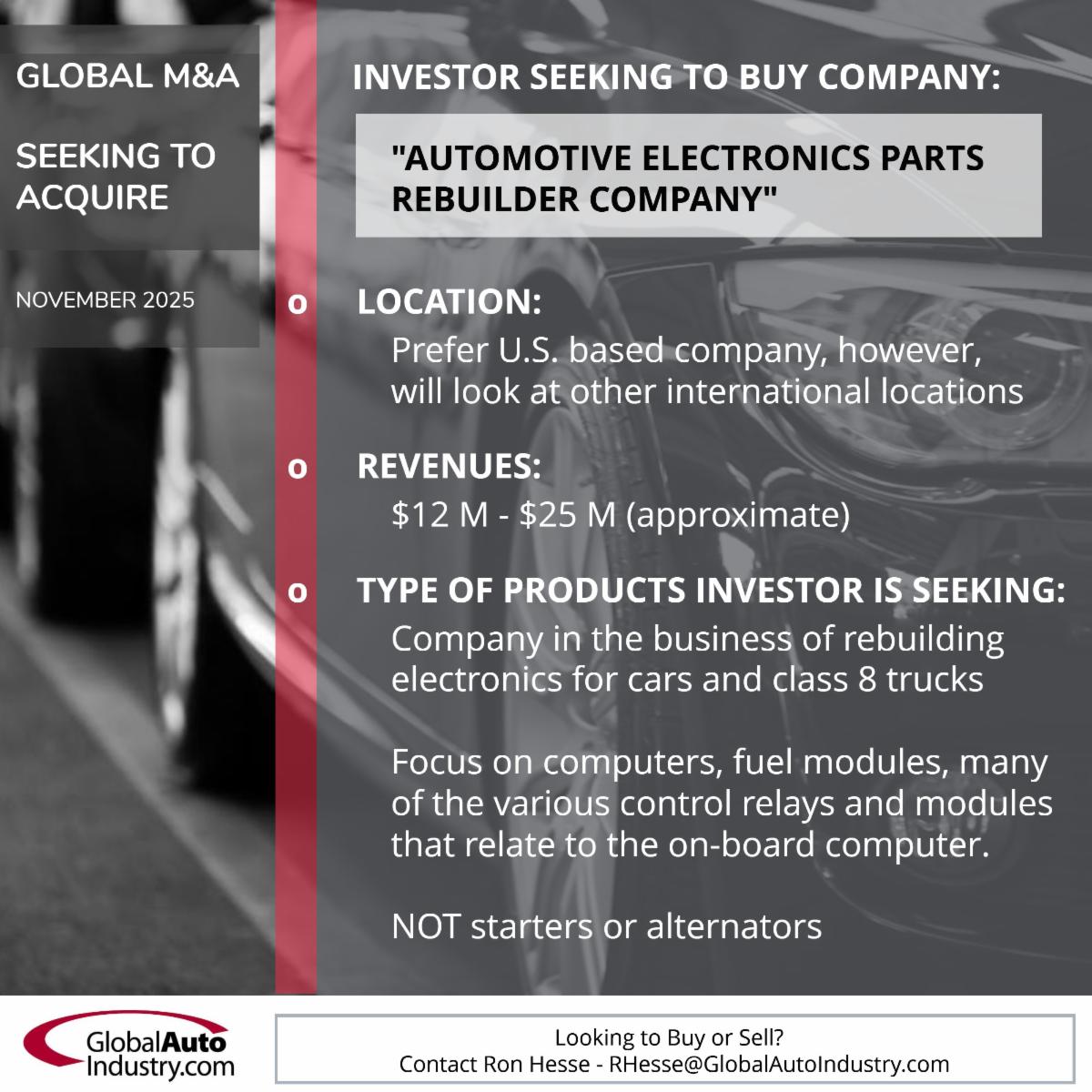 To learn more about all Global M&A deals, contact Ron Hesse - RHesse@GlobalAutoIndustry.com