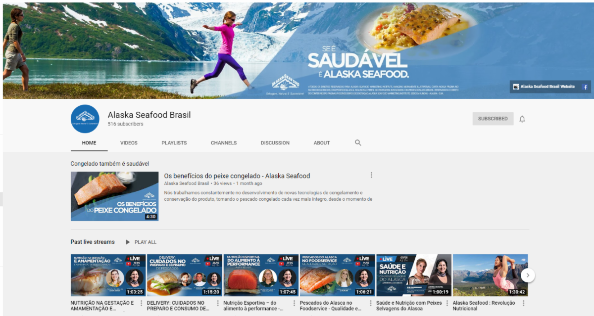 and Facebook page, primarily focused on Alaska seafood nutrition. ASMI has hosted a total of five one-hour seminars since stay-at-home orders were first announced in March. The seminars include participation from professionals discussing the importance of Alaska seafood for a healthy and nutritional diet, and additionally cover specific topics such as sports nutrition, mother and infant nutrition, seafood quality, and nutrition in foodservice. On YouTube, there are over 1,500 views of the seminar videos and the Facebook videos have reached over 6,000 views. The videos are saved on both channels and ASMI South America will continue promoting them to raise consumers, nutritionists and dietitians' awareness on Alaska seafood quality and nutritional benefits. The consistent messaging is part of the strategy adopted by ASMI since the start of 2020.